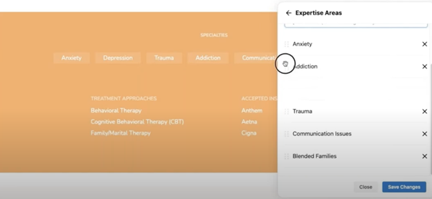 She showed how you could add them, delete them, and change the order of them. The specialties ended up displaying like shown below.
